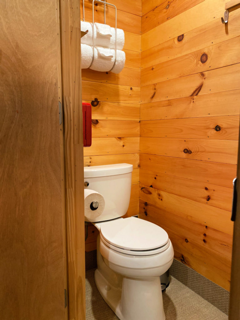 The cabin is aesthetically appealing just as everyone’s pictures made it seem. The plush queen sized bed is situated up against a large window facing the great outdoors. There’s a small multi-purpose table and chair situated just as you walk in for eating, writing, card-gaming, reading, working—whatever you desire to use it for really. There’s a fully functioning toilet and shower—they even provide you with body wash, conditioner, and shampoo (if you’ve forgotten yours or are used to using what is provided). Of note, they do not have a mirror anywhere which makes for doing your eyebrows quite the challenge.