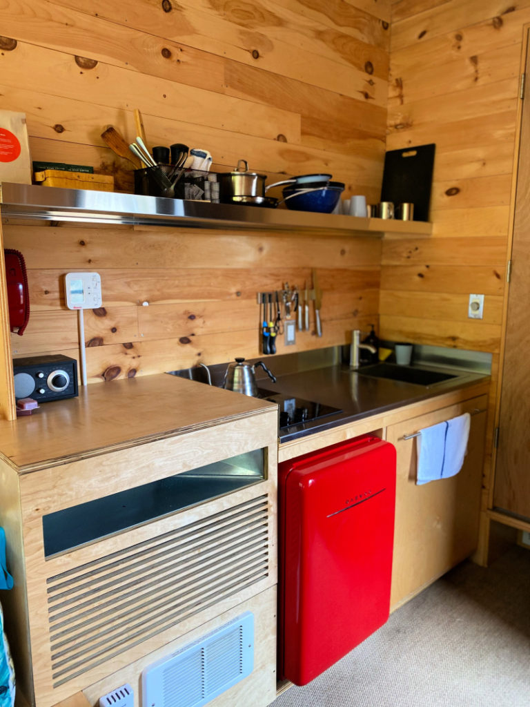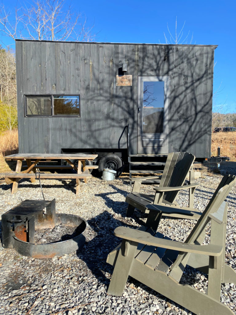 Pro-tip: Pack everything you think you’d need and want food wise—snacks, drinks, breakfast, lunch, dinner. The closest town to this location was like an hour away. Getaway provides the utensils, pots/pans/kettle, organic olive oil packets, cream, sugar, salt and pepper and mini fridge to store your food. There’s a two burner stovetop. And, of course if its warmer you can cook your food by fire (they provide wood and lighter at an additional cost).